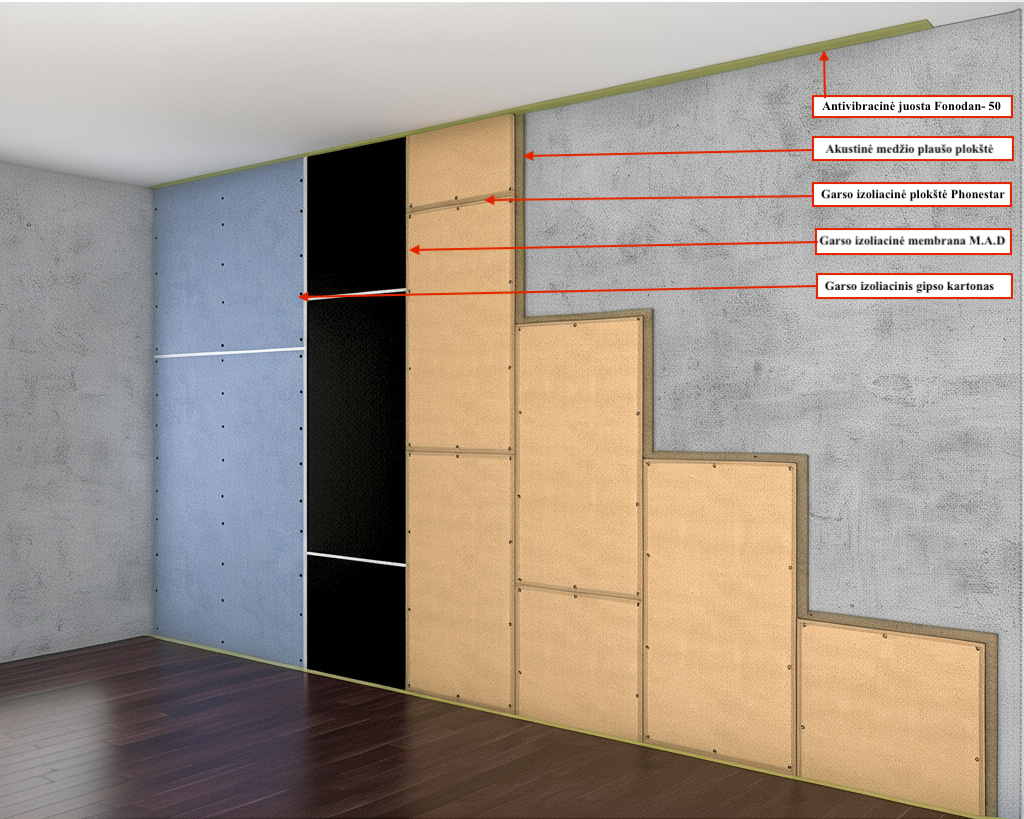 Unikali plokštės struktūra ir savybės suteikia jai universalią garso izoliacijos funkciją – ji ne tik sugeria ir izoliuoja visų dažnių triukšmą, bet ir mažina vibracijų perdavimą, pašalina garso tiltus. Tai leidžia veiksmingai kontroliuoti tiek ore sklindantį, tiek struktūrinį (smūginį) triukšmą.